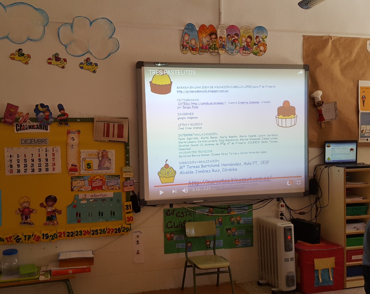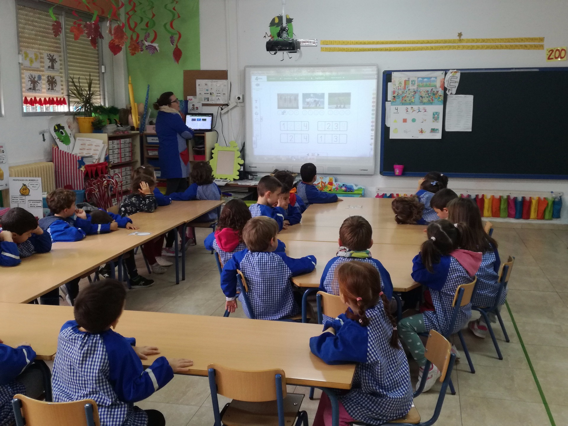 En el colegio C.E.I.P. La Inmaculada de Salar un pueblo de Granada, la maestra de Educación Infantil de 4 años, también utiliza la pizarra digital para explicar las fichas que realizan, además, ahora están trabajando el Proyecto de la Abeja, y a través de ella buscan información, les muestra imágenes, vídeos e cosas importantes sobre ellas.